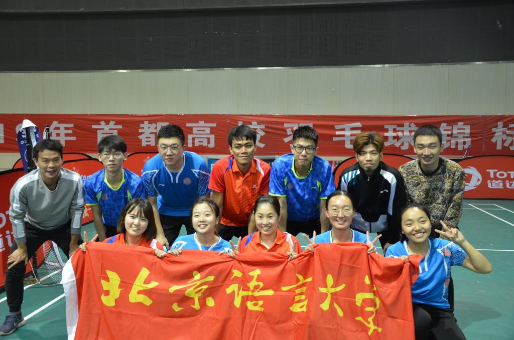 北语羽毛球队曾斩获2014年首都高等学校羽毛球锦标赛男子团体乙B冠军, 女子团体乙A组第九名,男双季军,女双、混双第五名,2015年首都高等学校羽毛球锦标赛男子团体乙A亚军,男双冠军,混双季军,2019年包揽首都高校羽毛球锦标赛乙B组女单冠亚军,男单季军。