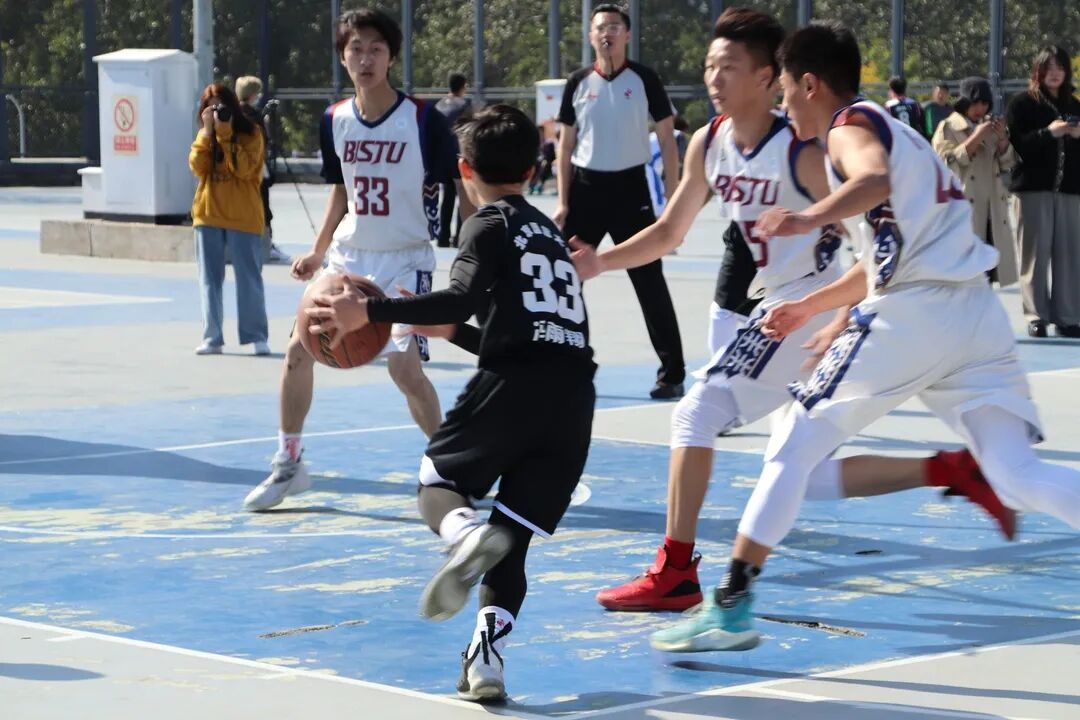 比赛伊始,北语跳得球权。面对对方严防,1号郭羿辰强突造犯规,罚篮得分,8号张昊紧随其后,生突2+1打成,点燃全场。33号冯雨翔,8号张昊联手一波3分雨将比分拉开,首节打完12:7,北语领先。