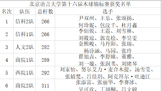 (按每队前四名总杆数进行排名,若总杆数相同,则两队中计入成绩的个人杆数最低者队列名次在前。)