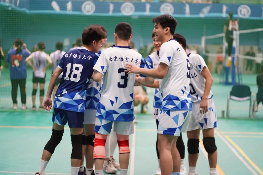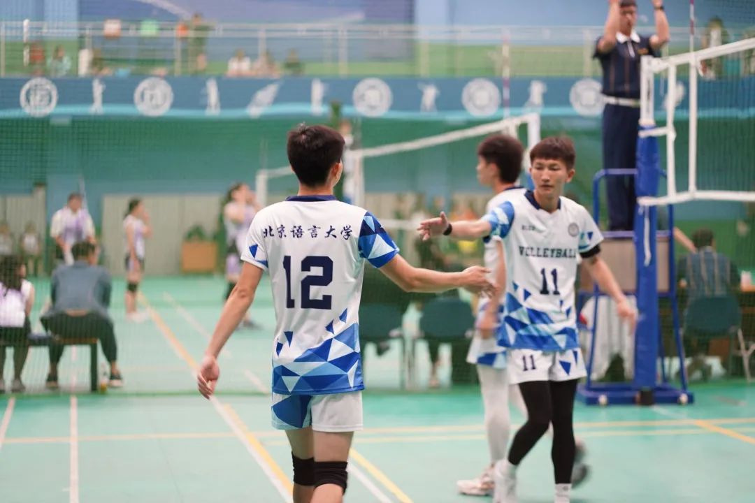 回场后我方持续顽强防守,在球往返三回合后我方成功追平比分。接下来对方发球失误,拦网出界,配合不到位,我方防守起球,比赛来到22平。而后我方打手出界以1分反超,直至24 : 22,来到我方局点。最后成功扣球,北语以25 : 23的成绩艰难赢得第二局。