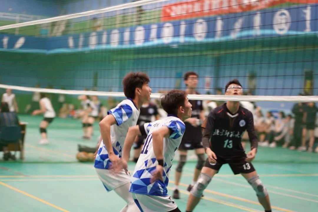 下午2时40分,我校对阵北京师范大学,以第一局18 : 25,第二局25 : 23,第三局11 : 15,总比分1 : 2的成绩惜败。
