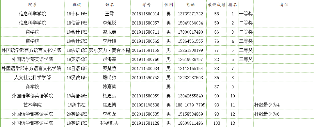 比赛成绩