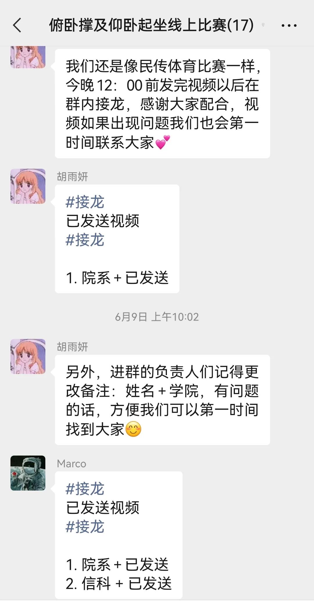 此次比赛以线上录播视频展示为主要形式。为便于管理及沟通,由各院负责人收集该院报名表及视频等参赛资料后提交至大赛组委会,并在大赛微信群内进行交流与联络。负责人们的积极配合都为此次大赛的顺利进行带来了不小的助力。