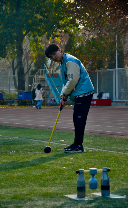 在整个比赛过程中,同学们都充分践行着 “友谊第一,比赛第二”的精神。选手们会相互帮忙捡球、坐标记点,也会在等待时间里交流技巧经验,他们在这场比赛中不仅提升了自己的木球水平,也收获了最真挚的友谊,这也让我们的木球比赛有了更加深刻的意义。