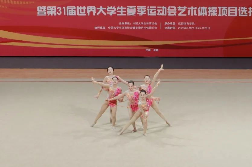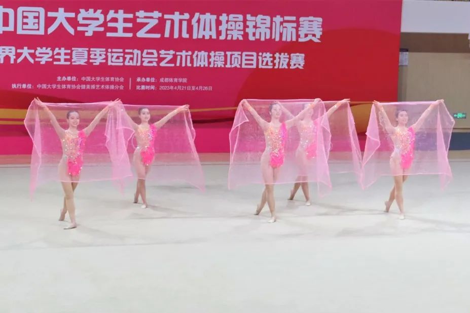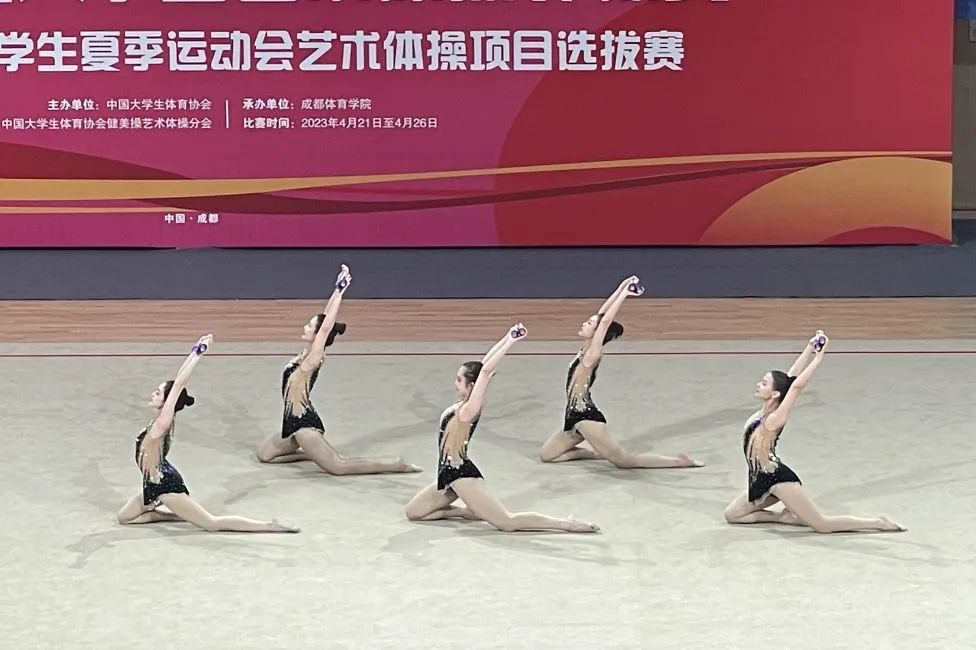2023年中国大学生艺术体操锦标赛暨第31届世界大学生夏季运动会艺术体操项目选拔赛在成都体育学院举办。来自全国32支高校艺术体操代表队、290余名大学生运动员为中国大学生艺术体操的最高荣誉展开激烈角逐。我校代表队于大学甲组组别,与清华大学、四川大学等高校同台竞技。