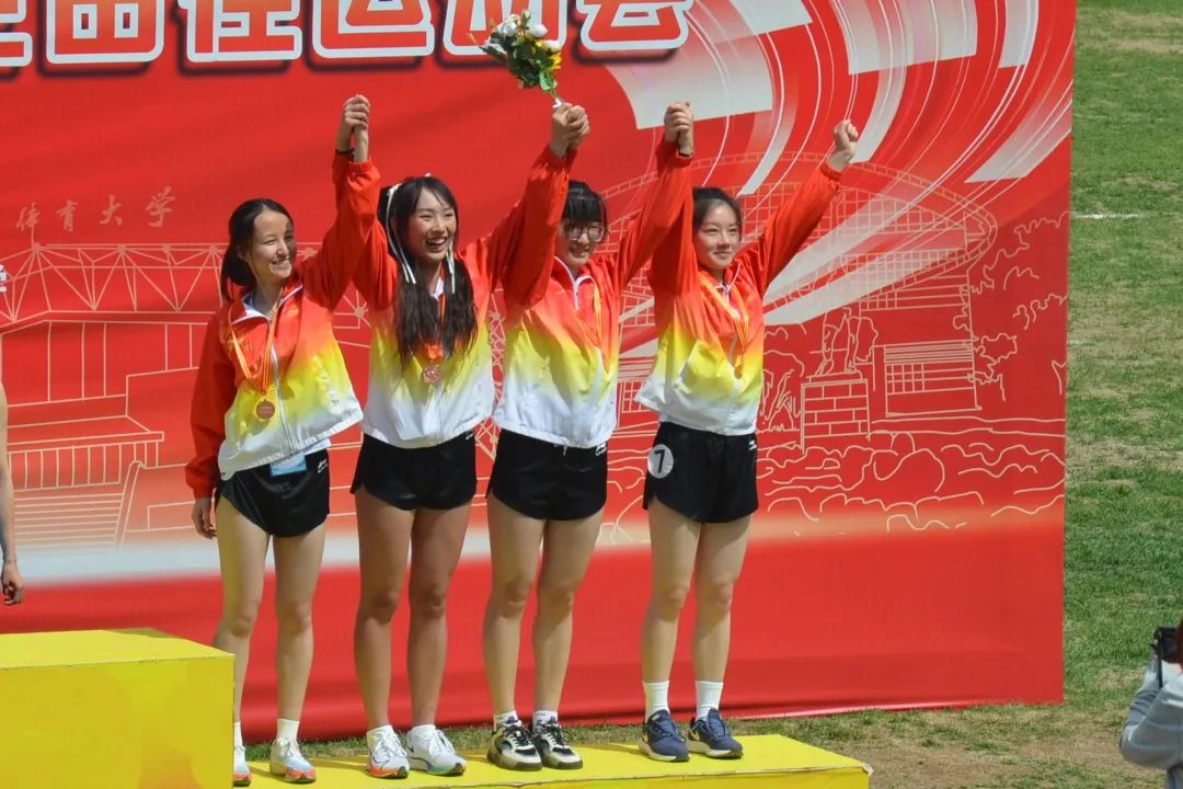 运动员们在赛场上通过汗水和毅力的拼搏,最终以4分43秒21的成绩获得铜牌,为北语争光!