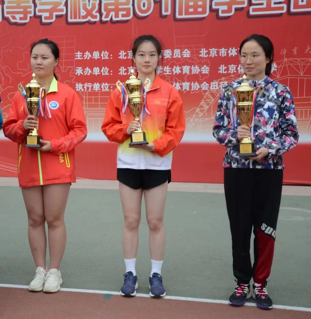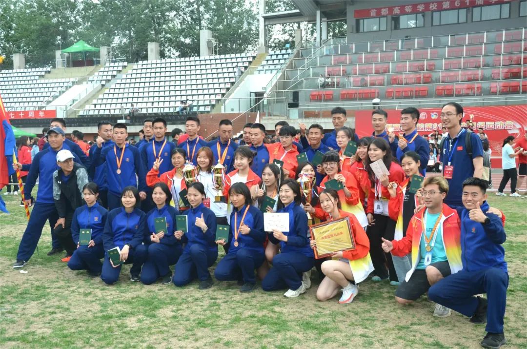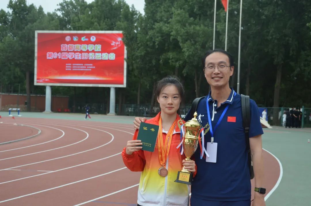 2023年5月18日至21日,首都高等学校第61届学生田径运动会在北京体育大学举行。此次比赛在张泽凯老师的带领下,经过四天的角逐,我校的田径队共取得两银一铜,有七项第一至第六名,分别是朱凌霞同学的女子400米第二名,王晓萌女子跳高第二名,朱凌霞、蔡厚珺、张赜音、张家瑜组成的女子4×400米接力赛第三名,张利娜女子跳高第四名,郑小芳女子1500米第四名,龔渝婷女子标枪第五名,王仙富男子10000米第六名。并取得了丙组女子团体总分第五名以及体育道德风尚奖。