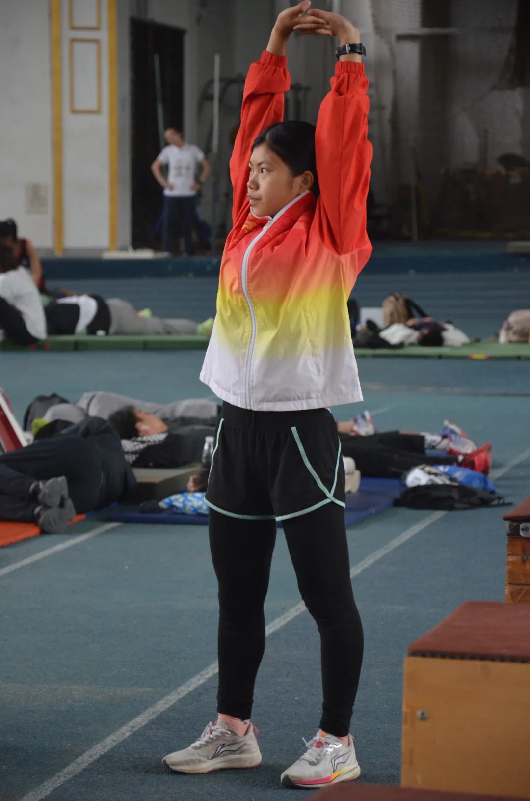 郑小芳运动员在热身中