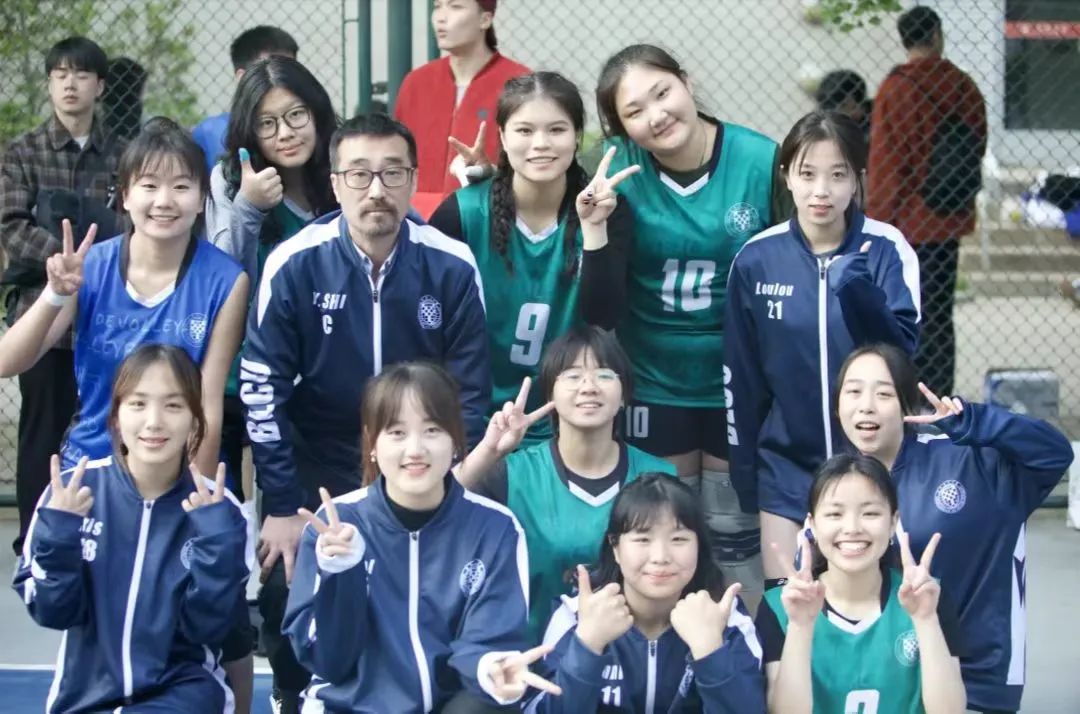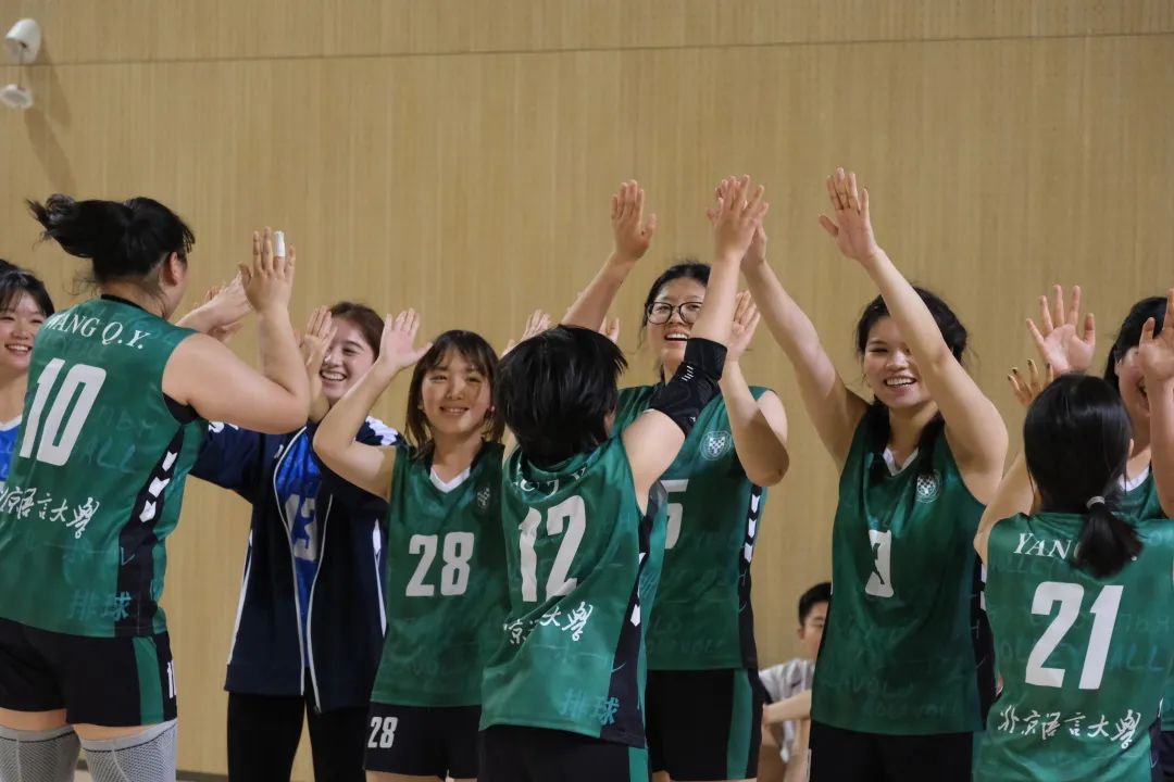 2023年5月7日,我校女排出征首都高等学校阳光体育排球挑战赛。在北京交通大学排球决赛赛场上,我校女排顽强拼搏,奋勇争先,配合默契,锐不可当,以3:1的较大优势战胜了北京外国语大学,为北语争得了冠军的荣誉!同时,女排队长杨佩君同学荣获优秀运动员称号!