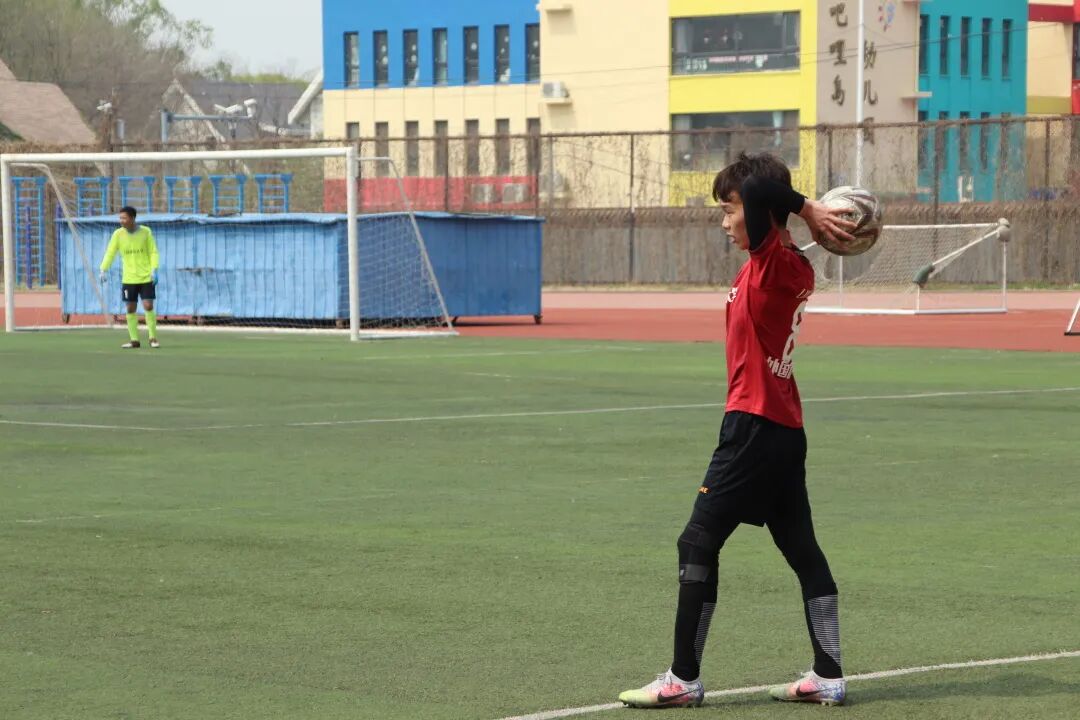 比赛于中午12:20开始,我方获得球权,对方开局攻势凶猛但都被我方化解,开局第4分钟,首经贸接长传杀入禁区拿下第一分.