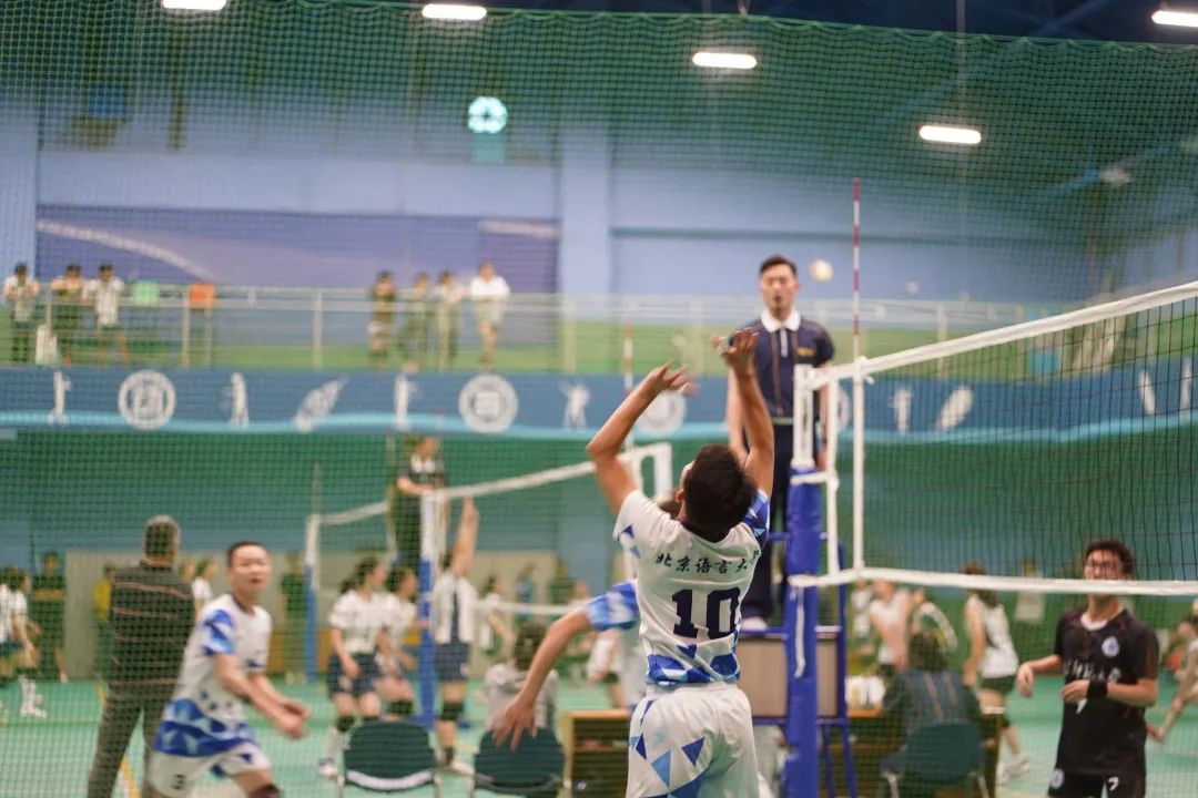 回场后我方持续顽强防守,在球往返三回合后我方成功追平比分。接下来对方发球失误,拦网出界,配合不到位,我方防守起球,比赛来到22平。而后我方打手出界以1分反超,直至24 : 22,来到我方局点。最后成功扣球,北语以25 : 23的成绩艰难赢得第二局。