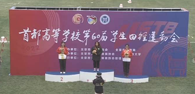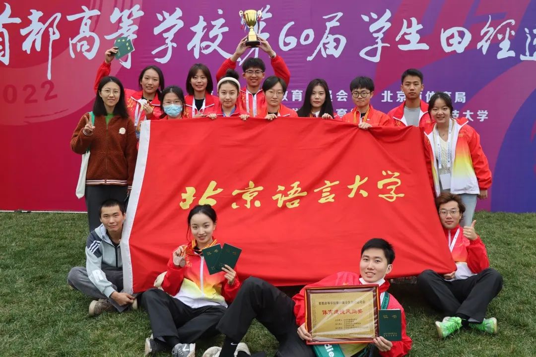 【BLCU体育新闻中心10月30日讯】2022年10月27日至30日,首都高等学校第60届学生田径运动会在北京科技大学举办。此次比赛得到体育部主任王伟光老师的大力支持,在张泽凯老师的指导下,我校由21名运动员组成的田径代表队,由随队经理带领,参与了15个项目的角逐。为期4天的比赛,我校田径队员共摘得1金2银2铜,4个第四至第八名,最终获得丙组女子团体第四名,体育道德风尚奖。