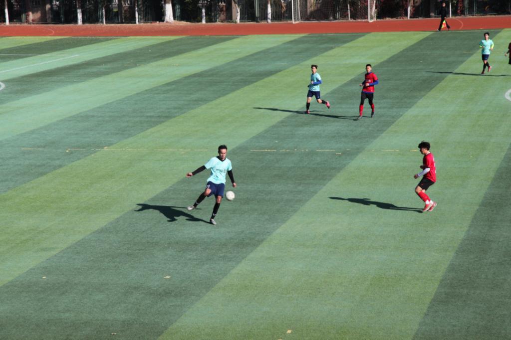 在抵挡住对手开局猛烈的攻势之后,我校男足吹响了反击的号角。左边前卫6号李孟达的速度和右边前卫9号李树强过硬的个人技术,都给对方的边后卫造成了极大的威胁。三位中场核心队员在不断尝试进攻的同时,也通过牢固的防守屡屡化解对方的攻势。