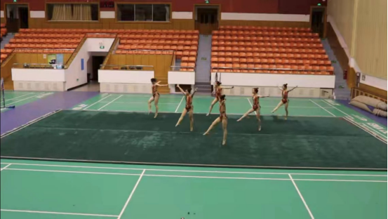 首先,作为今年刚刚入队的队员,非常荣幸能够获得这次这么珍贵的机会参与到全国性的比赛中。在比赛的准备过程中内心也很复杂,一方面是对大量的训练时间和学习时间的权衡,一方面一边是看着经验丰富动作优美的学姐们游刃有余的体态,一边默默把自己在队伍里的不足无限放大,甚至一度怀疑是不是没有自己集体操这个项目的最终呈现会更好。但庆幸的是,有小刘老师和王老师的鼓励,还有学姐师姐们耐心的指教,最终我还是坚定地走下了这场属于我的“长征”。