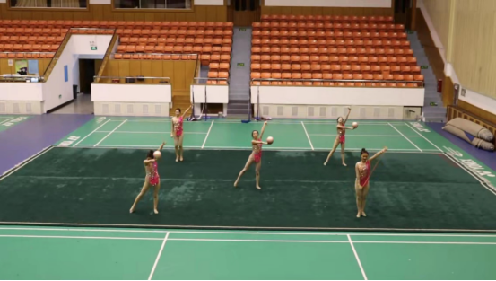 在三级纱巾操项目中,李毓玢、郝思祎、宋佳音、黄艺、文雅俪、高燕、苏昊昱组成的参赛队伍配合默契,动作优美,整齐划一,最终以8.35分的成绩远超第二名,斩获金牌。