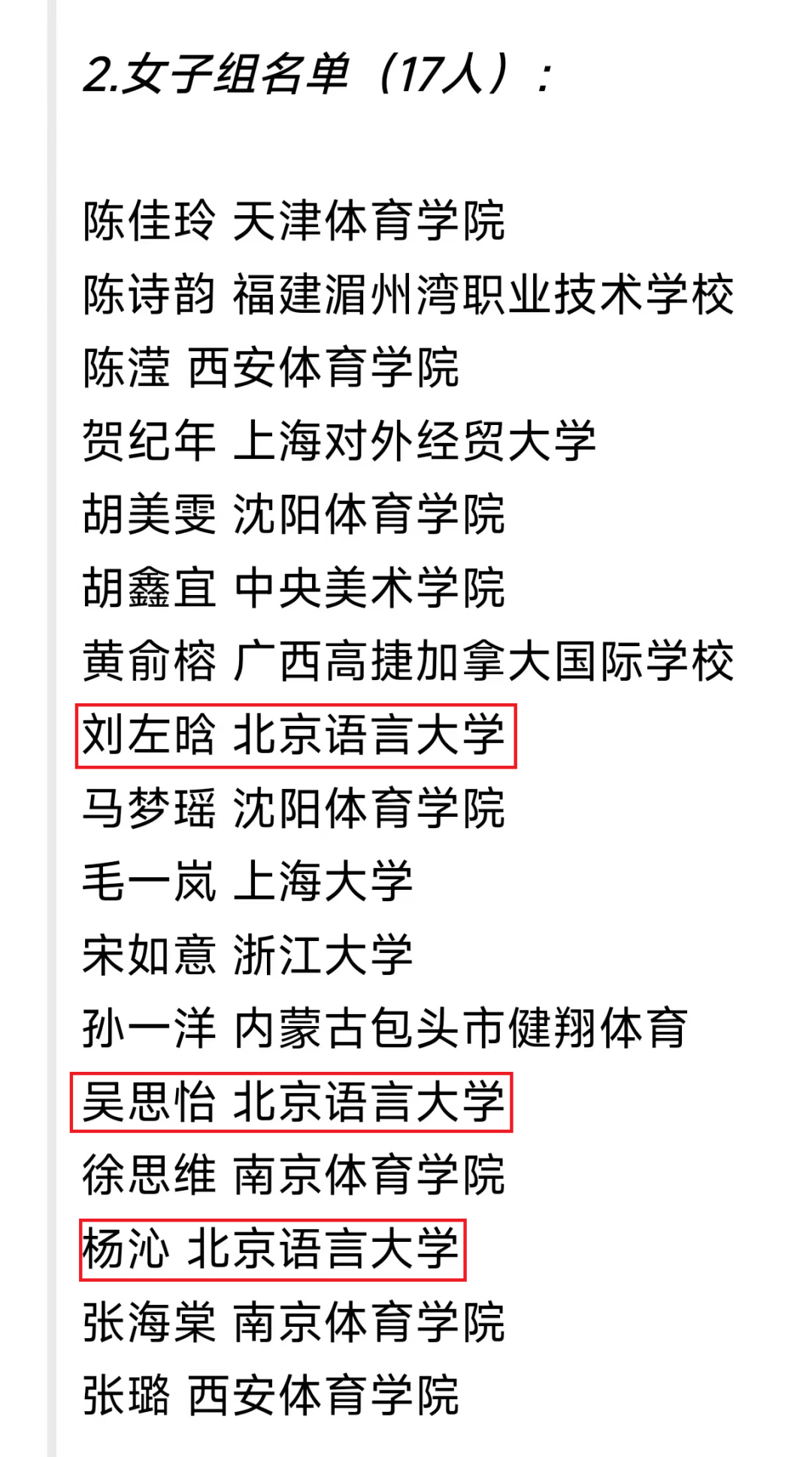 我校在读学生与校友共五人参加U24国家集训队选拔,其中三人入选。她们将有机会代表中国队参加7月2日至8日在英国举办的世青赛。