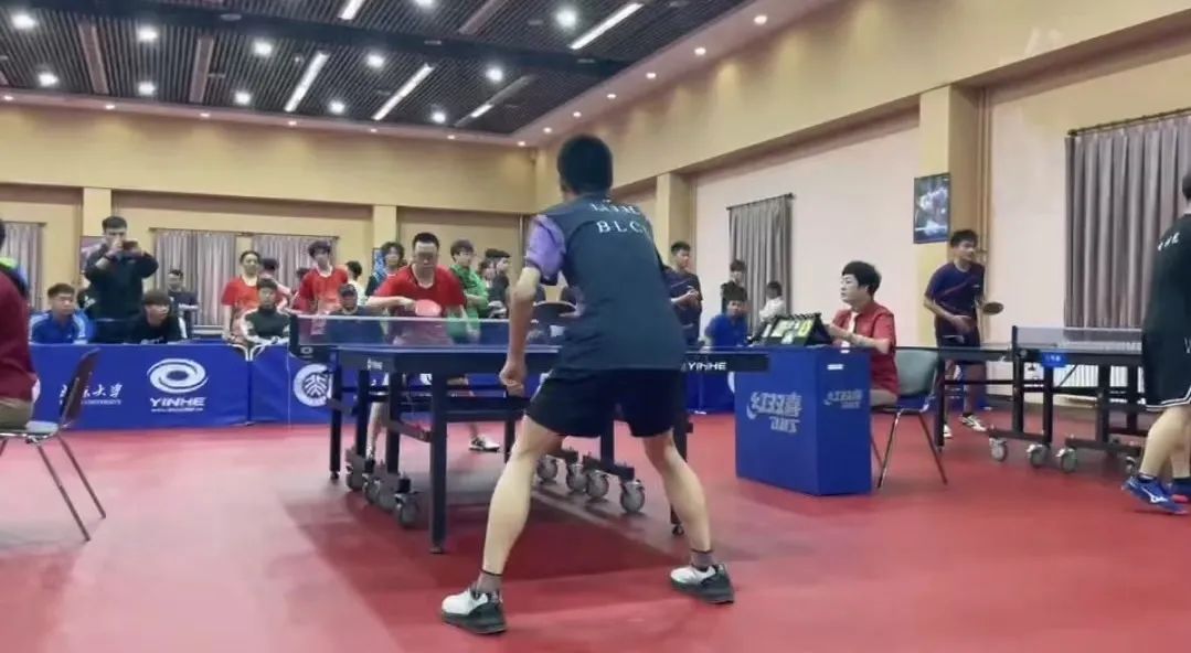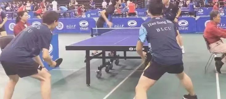 该选手曾获北语校内赛男单、男双冠军,作为大一新生,在本次比赛中积累了丰富的经验,同北京警察学院选手打至10:10的佳绩。