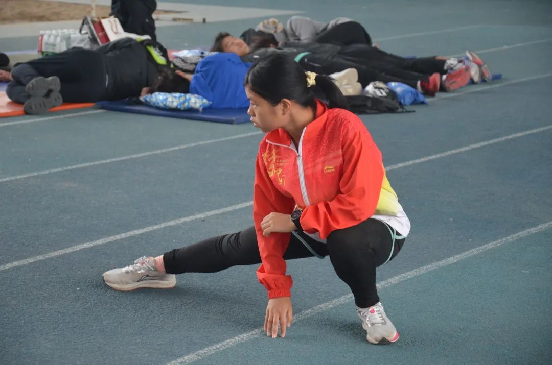 郑小芳运动员在热身中