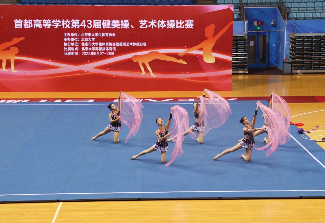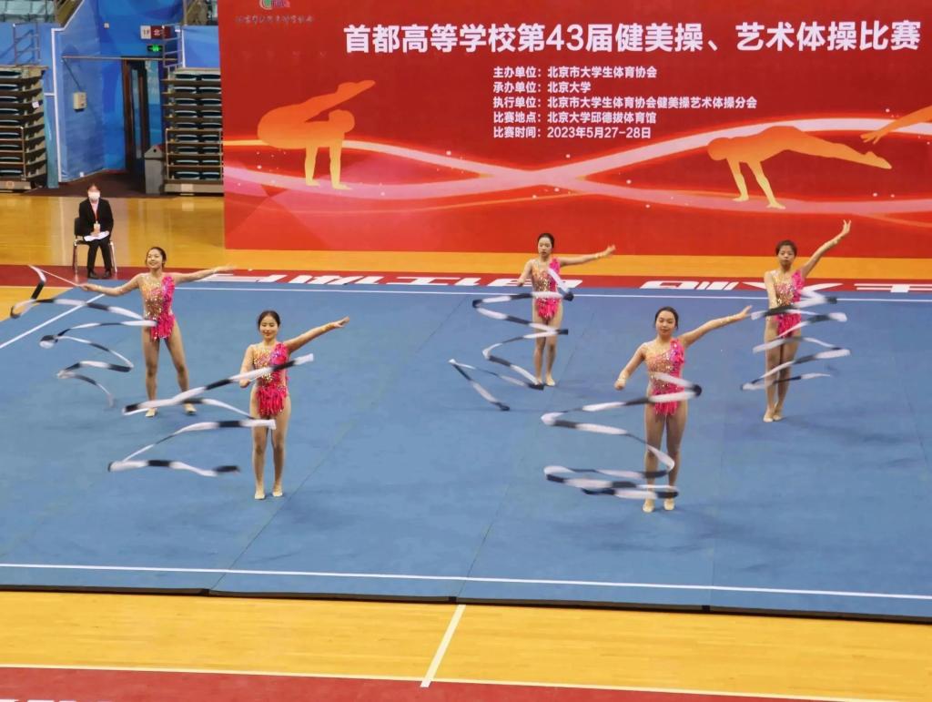 首都高等学校第43届健美操、艺术体操比赛由北京市大学生体育协会主办,由北京大学承办。5月28日,来自北京大学、清华大学、北京师范大学、北京体育大学、首都体育学院等19所学校的千余名高水平健美操与艺术体操运动员齐聚北京大学体育馆,北京语言大学艺术体操队参加了个人圈、个人球、三级徒手、五级徒手、初级带、三绳两球、集体操、五级棒、四级集体、三级纱巾的激烈角逐。
