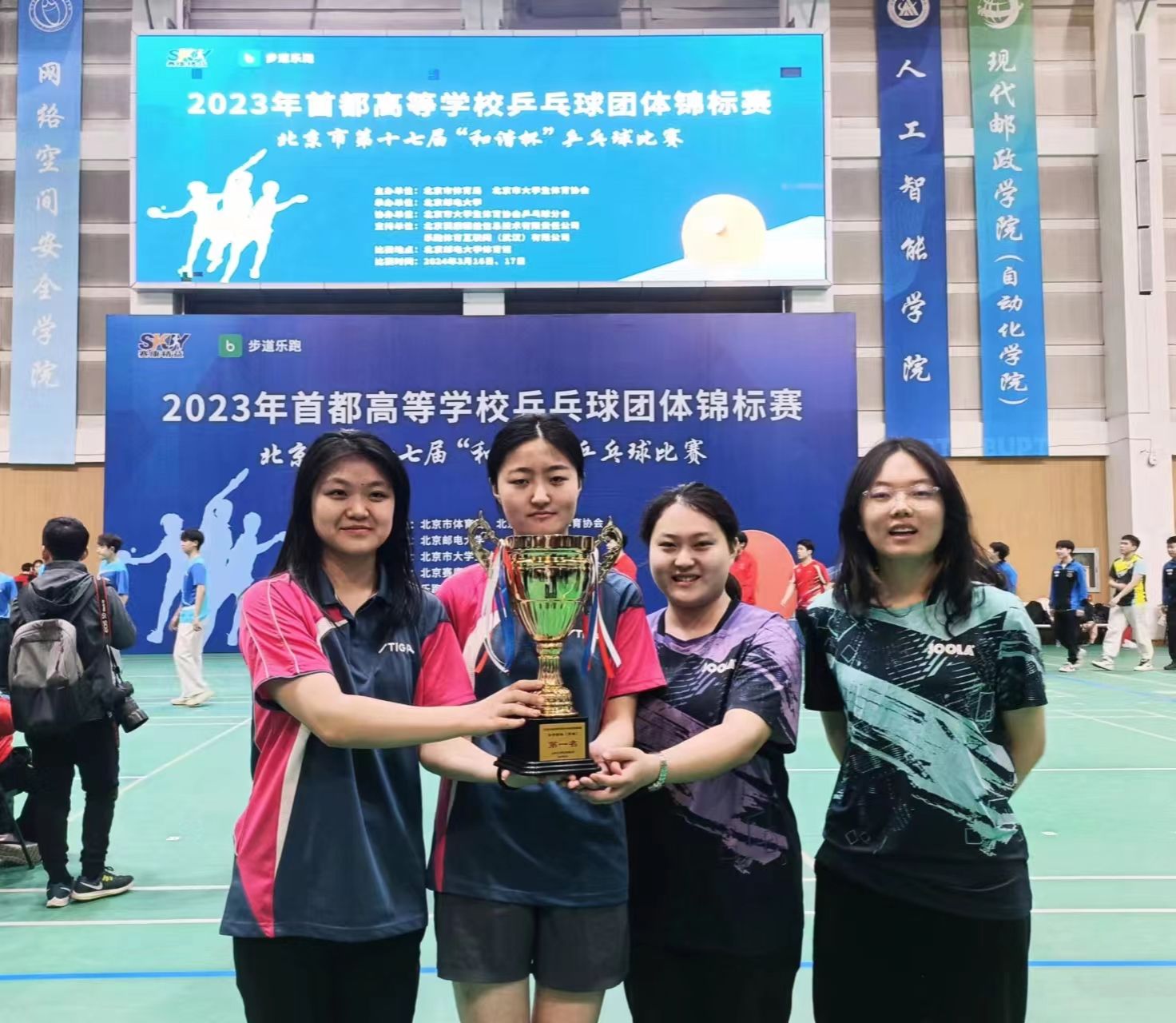 3月16、17日在北京邮电大学举办了2023年首都高等学校乒乓球团体锦标赛。我校体育部刘英老师带领校乒乓球队女队员崔颖琦、司马蓝、郑楚仪、左云骄,男队员冯创、李俊豪、刘梓宸、祁梓东、荣梓翔共9名队员参加此次比赛。