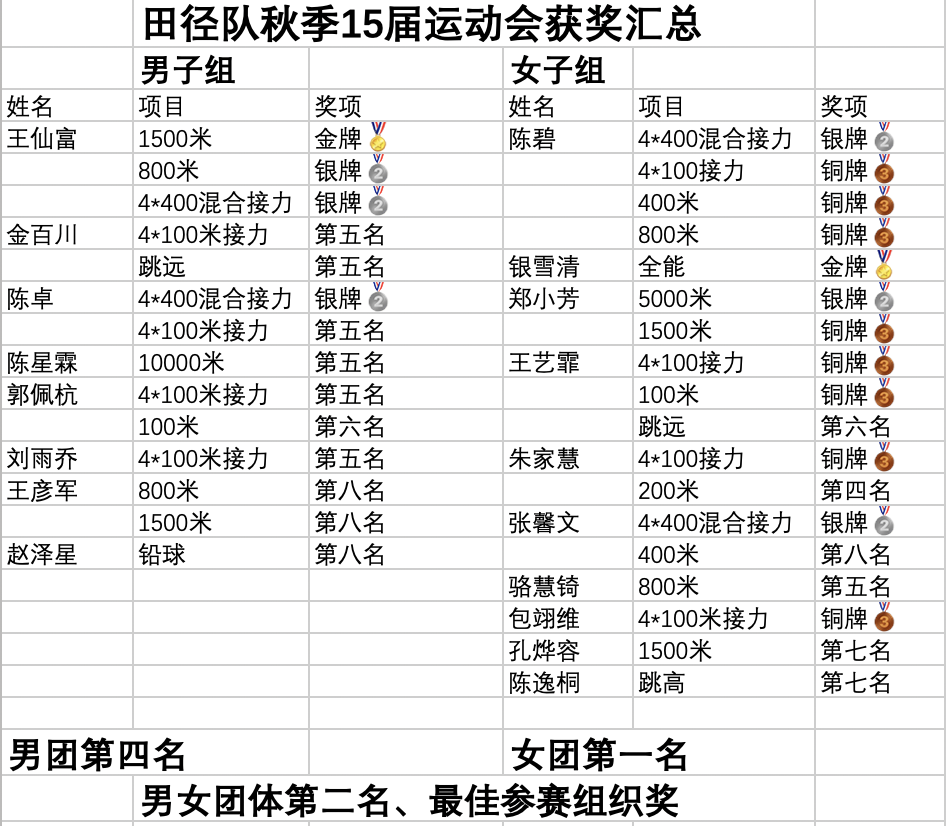 北语田径队获女团第一男团第四男女团第二最佳参赛组织奖优秀裁判员
