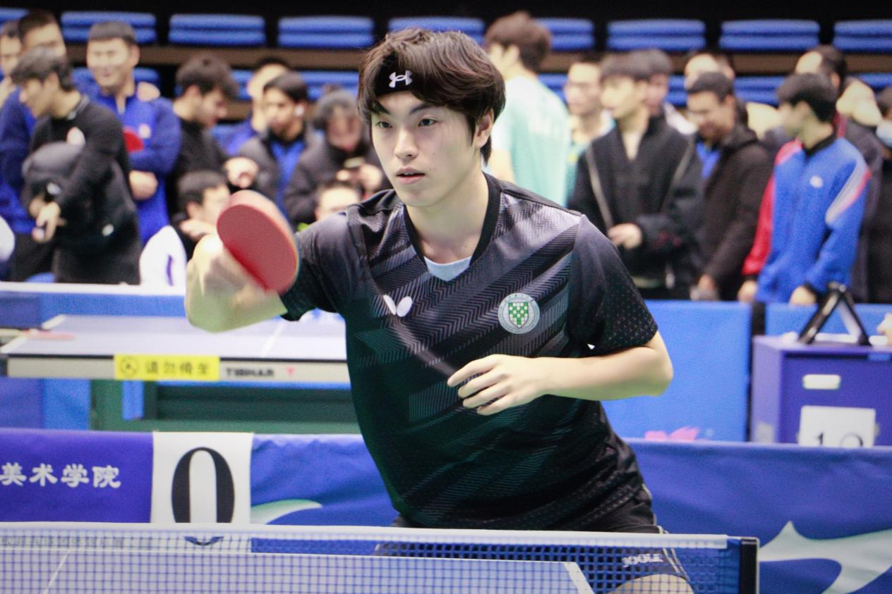 8日下午,5-8名排位赛开始,北语男团首轮对阵北京协和医学院男团。比赛伊始,双方就展现出了极高的竞技水平,2:2打平后进入决胜盘。决胜盘赛况激烈,西田兴史表现稳健,首盘开局对手短暂领先后,他凭借快速的进攻和精准的落点控制直追6分,最终以17:15的比分取胜,为北语锁定前六强!