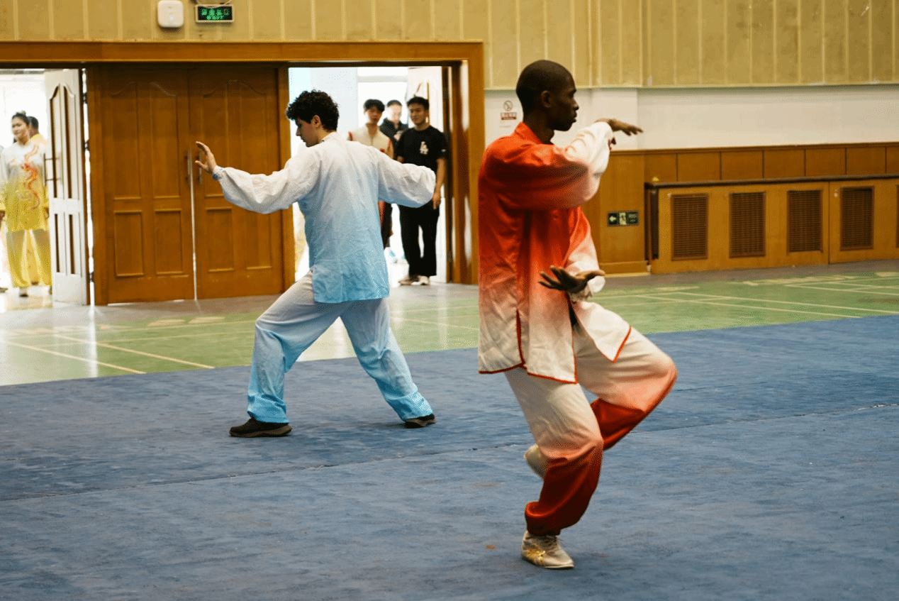 本次赛事设置自选类、传统类、太极拳类、教学套路类及集体项目五大类别,涵盖男子、女子单项各31项和集体项目1项。留学生运动员们在赛场上不仅展现出精湛的武术技艺,也传递出对中华文化的深厚热爱。比赛中,选手们以刚柔并济的动作诠释了武术的力与美,赢得了现场观众的阵阵喝彩。
