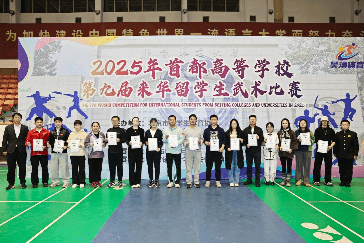 2025年11月23日,首都高等学校第九届来华留学生武术比赛在北京语言大学逸夫体育馆成功举办。本次比赛由北京市大学生体育协会主办,北京语言大学承办,吸引了来自近50个国家、19所首都高校的140多名优秀留学生运动员同台竞技,以武会友,共展风采。