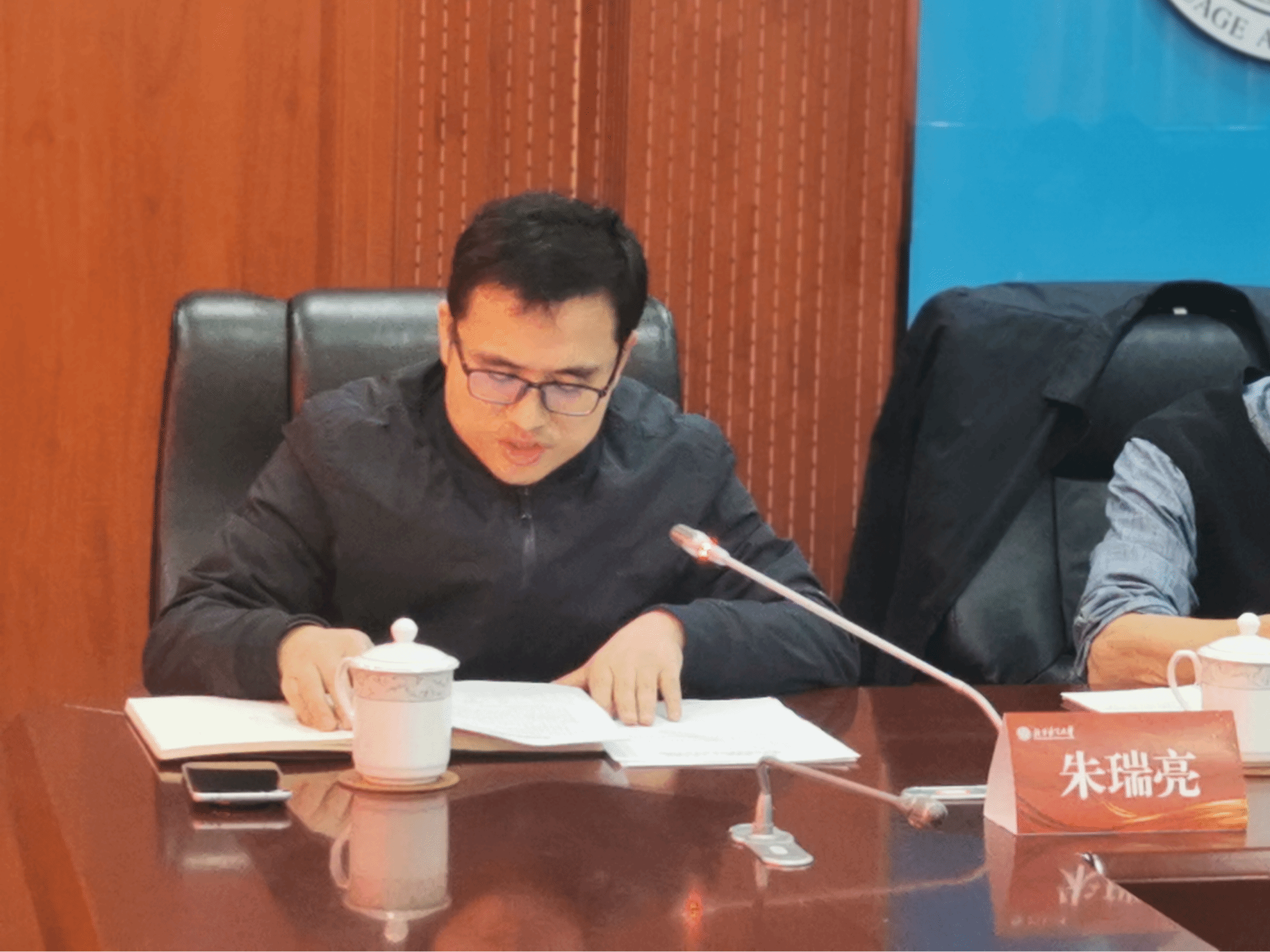 后勤服务集团党总支副书记(主持工作)朱瑞亮在会上介绍我校体育场馆设施建设规划情况。
