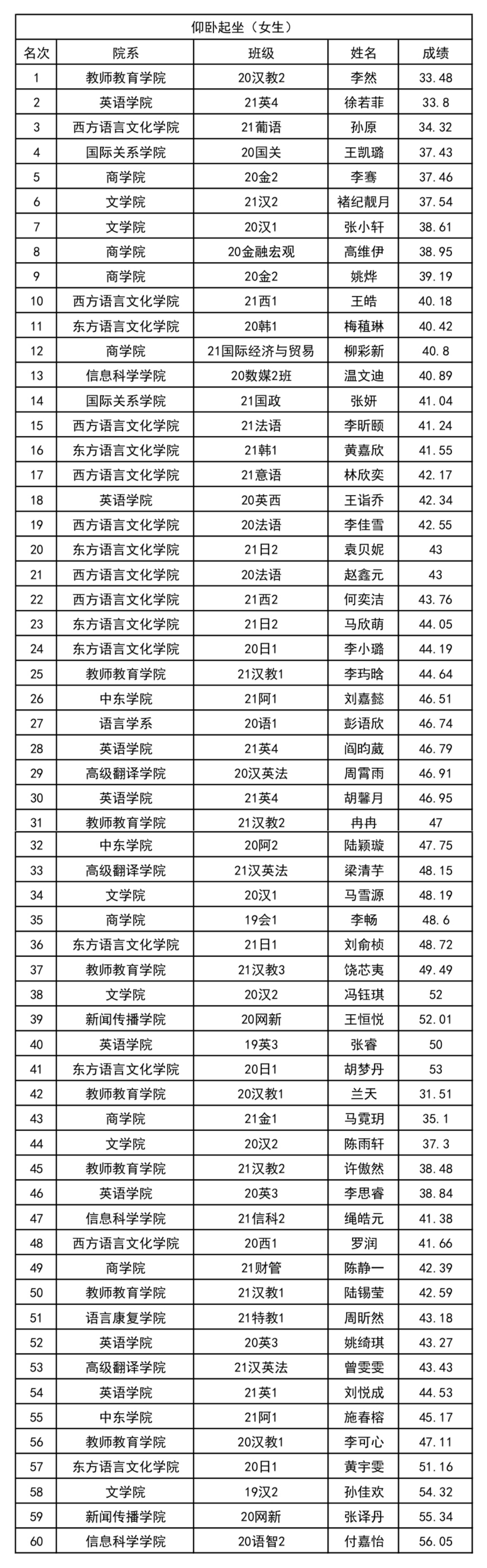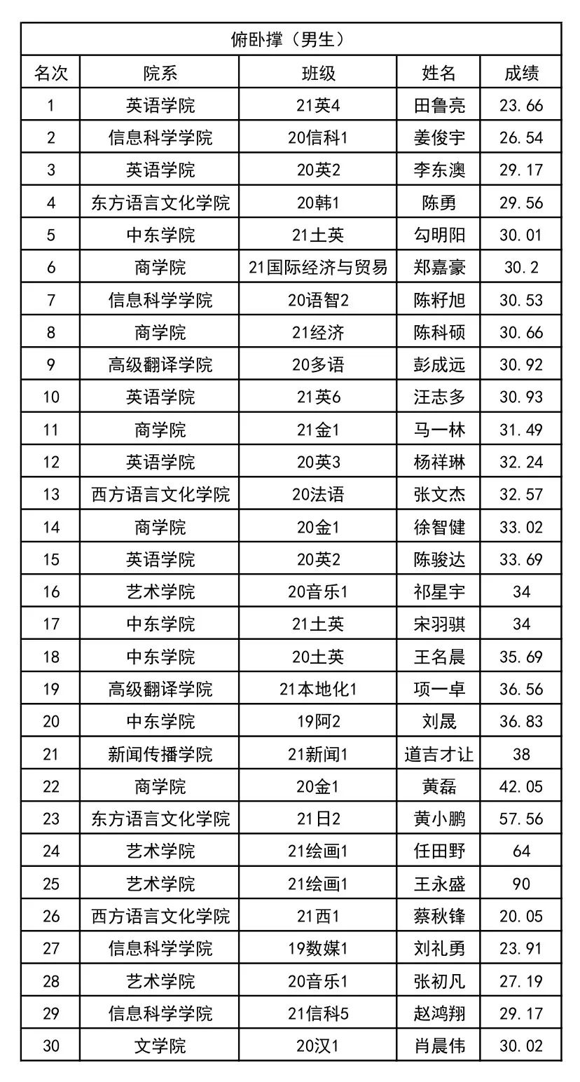 北京语言大学2022年俯卧撑及仰卧起坐竞速(线上)比赛成绩公示