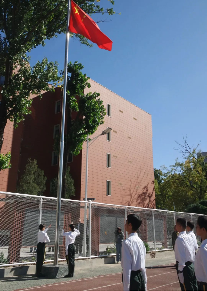 随后进行升旗仪式。全体肃立,庄严的国歌奏响,五星红旗冉冉升起。