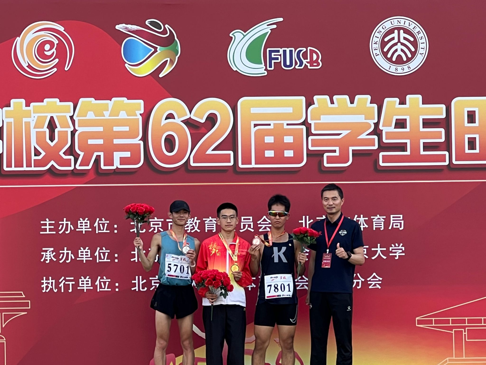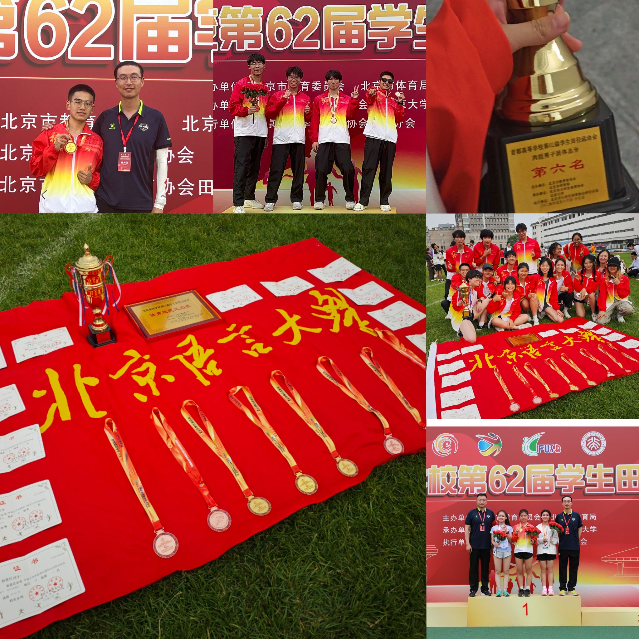 5月11日、5月16日至19日,首都高等学校第62届学生田径运动会在北京大学举办,我校田径代表队派出20名运动员参与19个比赛项目,在田径队教练张泽凯老师带领下与同组33所兄弟院校进行角逐。经过4.5天的比赛,共获得3枚金牌,2枚铜牌,1个第四名和1个第八名,最终以34.5分获得男子团体第六名,体育道德风尚奖,男女团体总分51.5。