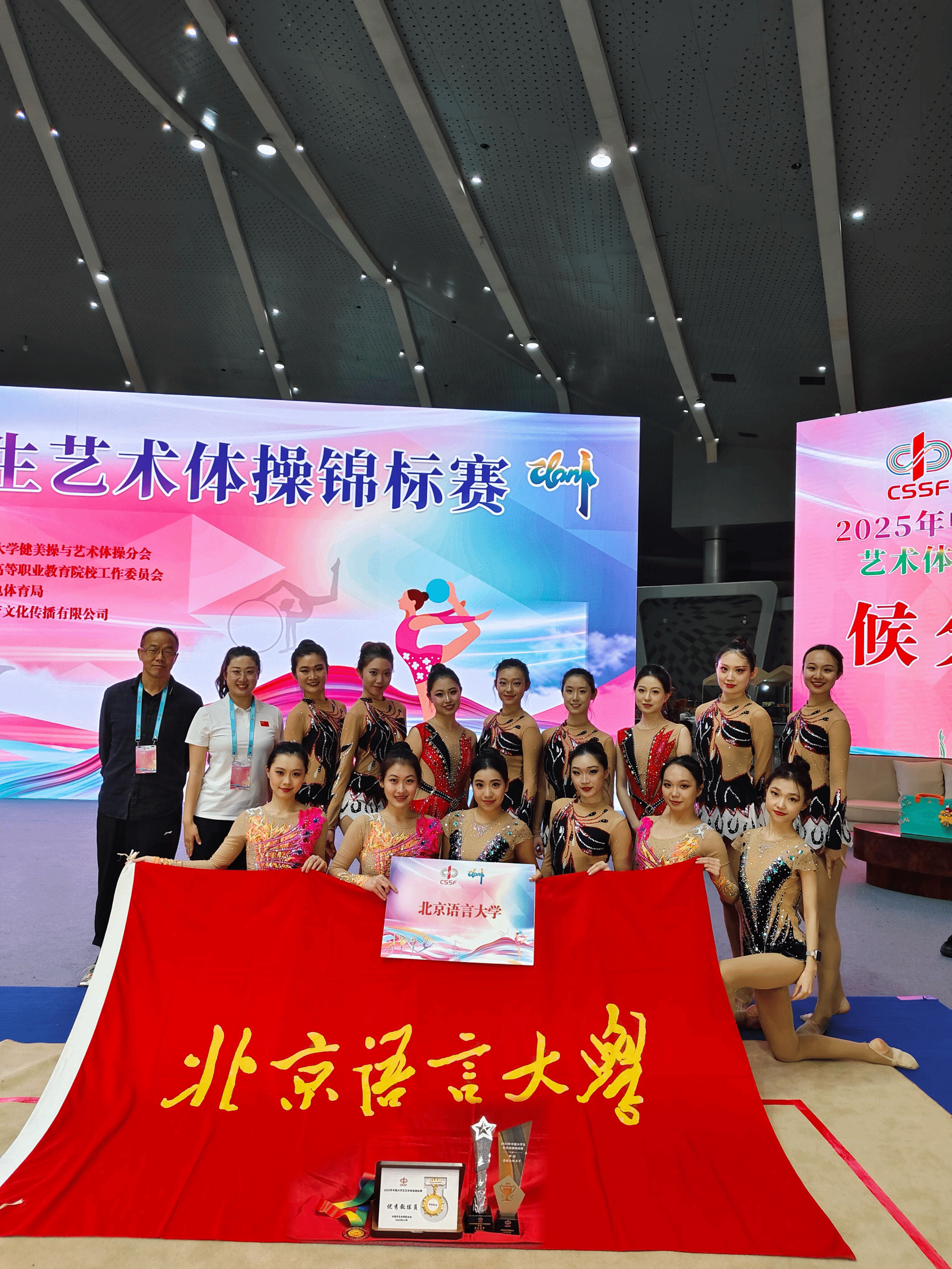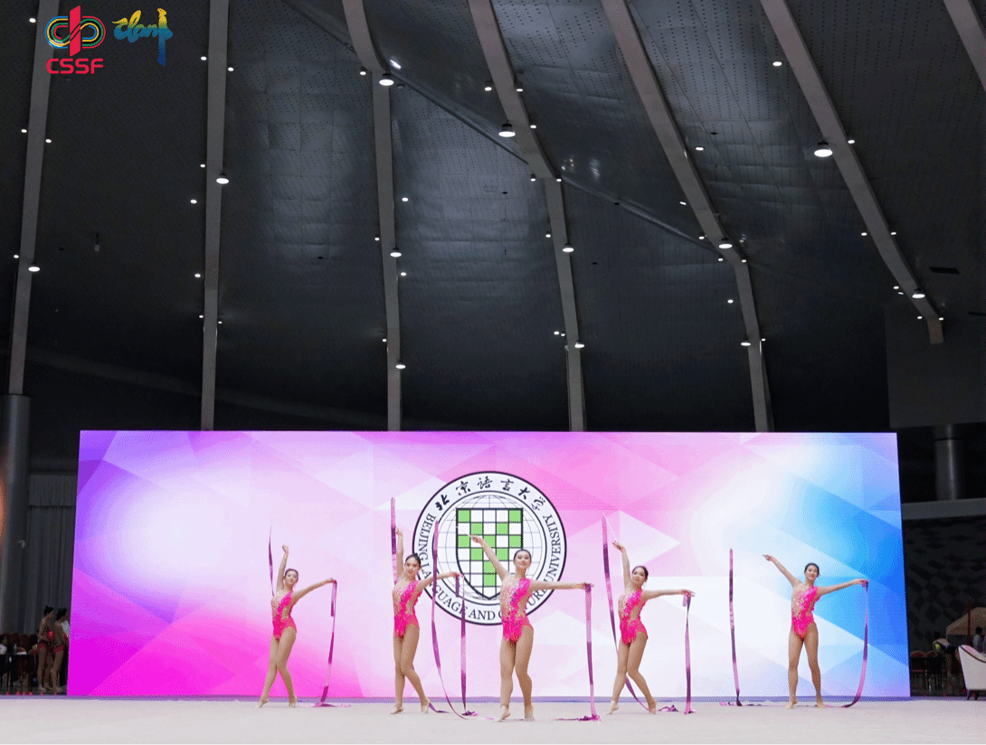 秋意渐浓,杏叶鎏金。2025年11月,北京语言大学艺术体操队分别在含金量最高的两项比赛中连获佳绩。在首都高等院校艺术体操比赛中,获得“五金两银一铜”;在中国大学生艺术体操比赛中获得团体总分亚军,刘颖老师获“优秀教练员”称号。
