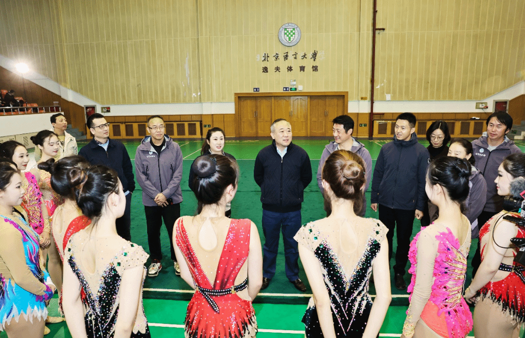 段鹏校长亲临现场,视察即将出征全国大赛的北京语言大学艺术体操队赛前汇报演练,为队员们加油鼓劲。出席活动的领导和嘉宾还有宣传部常务副部长卜晨光、学生处处长武玉州、宣传部副部长张晴、体育教学部直属党支部陆文红、体育教学部主任刘坤、体育教学部副主任姚强以及体育教学部的老师们。